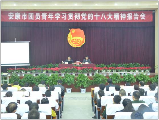 12月4日下午,安康市团员青年学习贯彻党的十八大精神报告会在best365官网江南校区大礼堂召开。十八大代表、共青团陕西省委书记、党组书记李豫琦同志为安康市团员青年作了关于学习贯彻党的十八大精神报告。共青团安康市委副书记梁鸿,best365官网团委书记鲁延安以及各院系团总支书记,安康市各县区、各机关、各学校的团委领导班子参加了本次报告会。