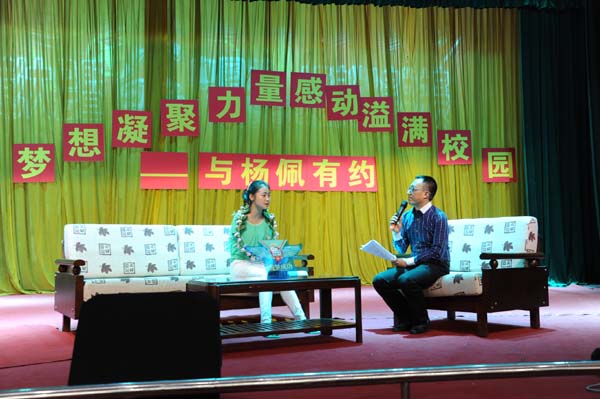 5月16日晚,best365官网在江南校区大礼堂举办以“梦想凝聚力量 感动溢满校园”为主题的第三届“四自教育”系列活动暨感动校园人物评选活动启动仪式之与杨佩有约访谈活动。学校党委副书记胡鸿晓,团市委副书记梁鸿,平利县宣传部常务副部长刘勇,各院系党总支书记、团总支书记及各院系学生代表参加了启动仪式。启动仪式邀请了《中国梦想秀》节目中圆梦成功的安康平利县女孩杨佩做客访谈,与best365官网大学生共话人生感悟,使与会师生在访谈活动中共同见证了杨佩这个折翼天使身残志坚、让人敬佩与感动的传奇。