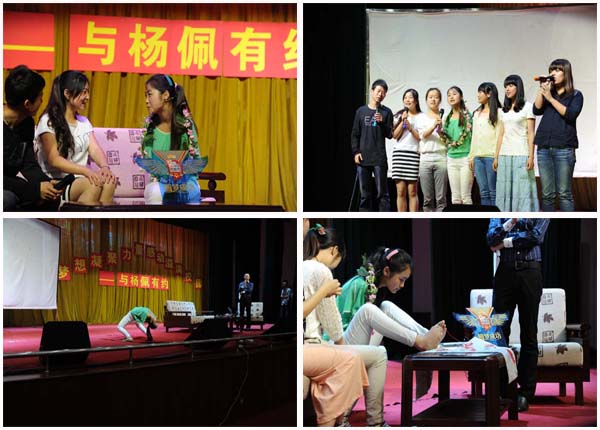 在访谈活动中,杨佩讲述了她从贪玩好动的快乐童年到9岁时遭高压电击失去双臂后以脚代手、为梦想不畏艰难四处漂泊,不断向命运挑战的人生经历和感悟。失去双臂后,她曾一度迷茫过,甚至轻生,但最后她还是从残疾的阴影中走出,面对生活和命运的双重压力,她明白她必须自立、自信、自强。当父母不在的时候,她用脚夹石头,树枝锻炼,练就灵活的双脚,学会为父母做饭,独立生活,为父母减轻负担。这个失去双臂的美丽姑娘,坚韧不拔,通过自身的努力克服生活中的种种磨难,微笑而自信的面对生活,面对每一天,用常人难以想象的毅力书写催人奋进的人生华章。当她在《中国梦想秀》上出现的时候,当她在best365英国体育在线大礼堂出现的时候,她那标志性的阳光般的灿烂笑容,她的乐观、自信、勇敢、坚强的精神深深地感动和感染着在场的每一位师生。