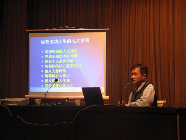 魏廷安先生首先就大学生如何成功定义人生进行了讲解,接着,从规划明确的人生目标、养成正面思考的习惯、建立个人品牌形象、培养核心竞争能力、建立人脉网络、培养恒心与毅力、建立积极人生观等七个方面详细阐述了经营成功人生的七大要素。最后,魏廷安先生还对学生们关心的热点问题进行了逐一解答。 魏廷安先生富有哲理的报告,对学生确立自己的人生目标、进行职业生涯规划有很好的指导和教育作用。