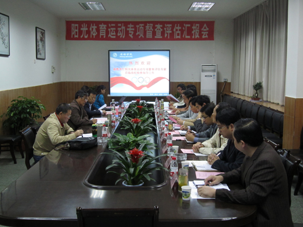 在检查汇报会上,王兴林院长代表学院对检查组的到来表示热烈欢迎,希望通过此次检查,进一步推动我院大学生体育工作的发展。陈刚副院长代表学院向检查组进行了专题工作汇报。学院阳光体育运动工作领导小组成员就检查组提出的问题给予了解答。