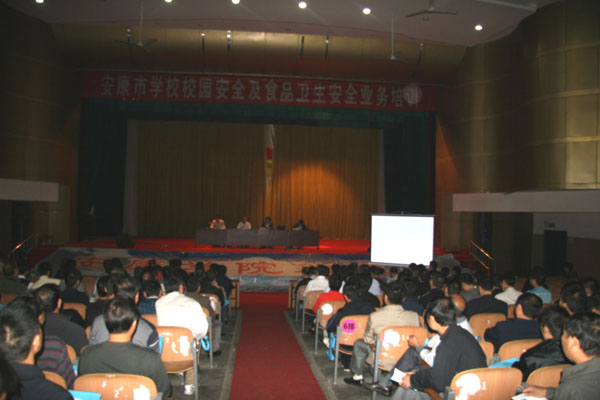 “安康市学校校园安全及食品卫生安全业务培训班”第一期开班仪式于9月25日上午在我院西校区大礼堂举行。学院副院长杨行玉,安康市教育局副局长李孝满、师资与师范教育科科长陈晓靖出席开班仪式。开班仪式由继续教育学院副院长王永东主持。 杨行玉代表学院致欢迎辞,李孝满就培训工作做了重要讲话。 安康市校园安全及食品卫生安全培训班分两期举行,全市600余名中小学校长和安全管理人员将参加培训学习。根据中小学及幼儿园校园安全管理的需要,培训课程设蛋奶工程实施流程及安全教育、校园突发事件处理、校园安全管理与规范、食品卫生安全法律法规、危险气象灾害的防范处理、食品卫生安全管理、学校食堂卫生管理常规等九个专题。为了做好培训工作,继续教育学院聘请安康市教育局、药监局、卫生局、气象局等市直各部门的专家授课,具有针对性强、专业性强、可操作性强的特点,此次培训将对提升我市中小学及幼儿园校园安全管理水平起到十分积极的作用。 培训由安康市教育局主办,我院继续教育学院承办。