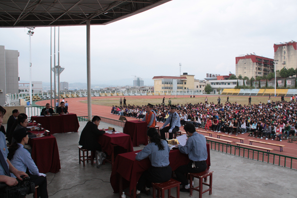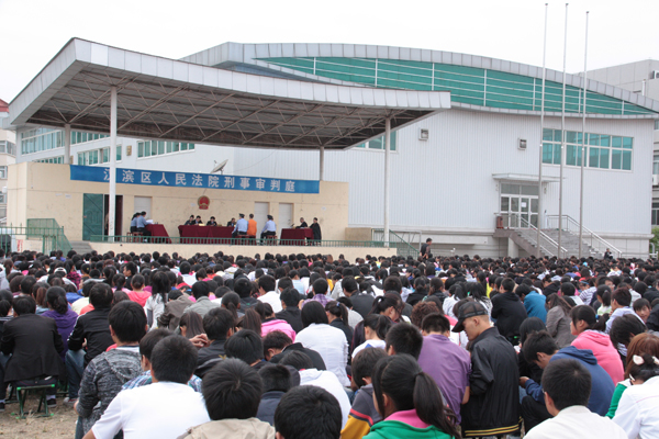 为增强学生知法、懂法、守法意识,预防犯罪,构建和谐平安校园,9月29日下午,汉滨法院和汉滨检察院联合在我院公开开庭审理了安康市某中学一学生因琐事致人重伤一案,我院3000余名师生现场听取了案件庭审过程。