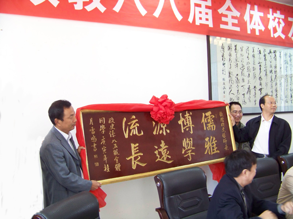 各位校友向母校汇报了自己的发展情况。校友代表衷心感谢母校培育之恩。中文系主任戴成元教授对同学们返校聚会表示热烈欢迎,感谢广大校友多年来对母校的关心支持。对校友们提出了“善待自己、善待亲人、珍惜家庭”的殷切希望并赠阅了自己的新书。昔日的学生与老师欢聚一堂,共叙师生情、同窗情,气氛温馨热烈。校友们心系母校发展,在随后的活动中,专程参观了新校区建设,并表示新校区建设好时,一定还要回来看看。