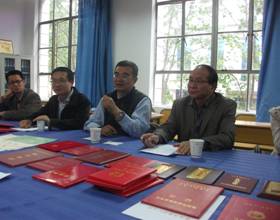 4月19日清华大学龙桂鲁教授、中科院数学与系统科学研究院骆顺龙研究员、陕师大曹怀信教授一行来best365官网指导专业发展并作科普讲座。下午16:30,在数统系会议室,来访学者与数统系应用数学专业和电信系应用物理专业教师举行座谈会,为两系的专业发展和人才培养提出了宝贵意见。