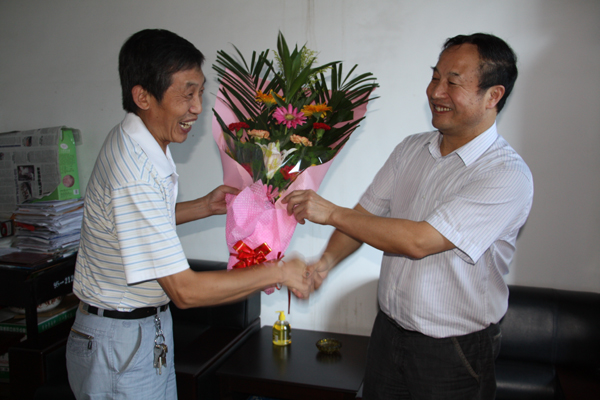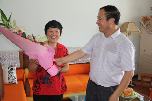 9月7日上午,在第26个教师节来临之际,学院党委书记杨涛,院长王兴林,副院长陈刚、向纪明分别在办公室、人事处负责同志的陪同下,亲切慰问了我院优秀教师代表周政教授、胡必利副教授、李?宁副教授、赵桃副教授等人,并向他们送上鲜花和慰问品,感谢他们在学校发展中做出的贡献,衷心地祝福他们节日愉快!并通过他们转达学院领导对全校教职工的节日问候。