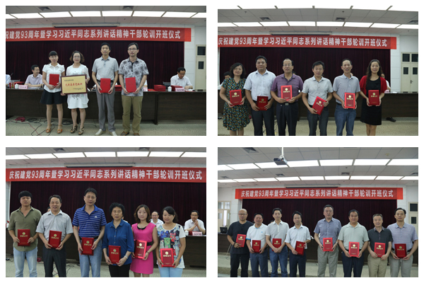 7月2日上午,best365官网庆祝建党93周年表彰大会暨学习习近平总书记系列讲话精神轮训开班典礼在图书馆六楼报告厅隆重举行。学校领导党委书记杨涛、党委副书记胡鸿晓、党委副书记兼纪委书记闵小平、副校长杨行玉、陈刚、向纪明出席了会议。学校各院系和部门副处以上干部、受表彰的先进集体和个人约150余人参加了大会。大会由胡鸿晓主持。
