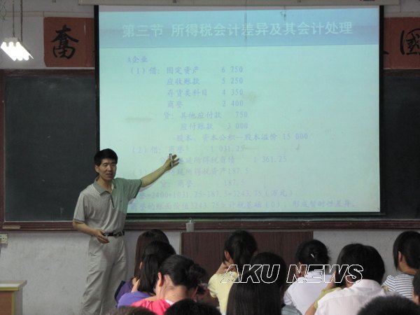 按照教学计划安排,本学期郭收库教授承担了2007级财务管理专业《所得税会计》课程的示范教学任务。郭教授为期四天的示范教学受到了经管系师生的热烈欢迎与普遍好评。期间,郭教授还参观了经管系实验教学中心,和经管系领导进行了深入交流,并对经管系的实验室建设和本科评建提出了建议,这对推动经管系课程教学改革、实验室建设、本科教学评建工作都将产生积极的影响。
