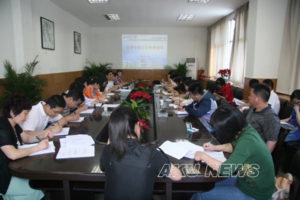 为了进一步规范学院公文处理工作,加强业务指导,提高公文办理效率,促进学院制度化、规范化管理,6月10日下午,学院办公室在第一会议室举办了全院专兼职文书公文处理培训会。各院系系办主任、专兼职文书人员以及各职能部门负责文书处理的科长等40余人参加了培训会。会议由学院办公室主任屈险峰主持。 首先,屈险峰向与会人员介绍了本次培训的目的和意义,指出继档案培训后,举办公文处理培训是学院办公室贯彻落实学院党政加强院系、职能部门规范化管理的具体举措,作为依法治校和党政公务的一项基本工具和手段,公文的规范化运行和管理对学院党政工作的传达、部署和基层的执行力的提升具有重要意义。他要求与会人员一定要利用本次培训的机会,认真学习,加强交流和沟通,严格按照学院关于公文处理的有关规定,努力做好各单位公文处理工作,切实提高学院公文处理的整体水平。 随后,办公室秘书科科长芦伟就学院公文处理的原则、基本依据、收发文办理的程序和要求以及公文常用知识等方面进行了详细地讲解,并解答了专兼职文书提出的有关问题,培训会取得了良好的效果。