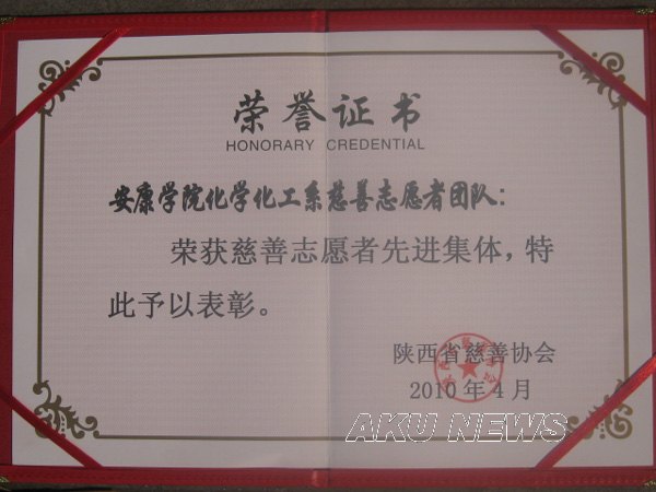 我院化学化工系青年志愿者服务团,在陕西省慈善志愿者组织建设工作经验交流会上再获殊荣,被陕西省慈善协会评为慈善志愿者先进集体,予以表彰。这是继2010年4月被共青团陕西省委、陕西省青年志愿者协会评为陕西省优秀青年志愿服务先进集体后获得的又一殊荣。 陕西省慈善志愿者组织建设工作经验交流会于4月14日在宝鸡召开。省决策咨询委员会主任、省慈善协会会长徐山林,省政协原副主席、省慈善协会名誉会长陆栋,宝鸡市党政负责人、我院党委书记杨涛等领导同志、各市、杨凌示范区、各县(区)慈善协会会长,慈善志愿者先进单位负责人以及新闻界的朋友们共计260多人参加了大会。徐山林会长发表了重要讲话。大会对在全省慈善志愿者活动中做出突出贡献的best365英国体育在线化学化工系青年志愿者服务团等15个先进集体和23名慈善志愿者先进个人进行了通报表彰和奖励。 best365英国体育在线化学化工系慈善志愿者团成立于1989年春,由best365英国体育在线化学系党总支发起,坚持送温暖到安康市老城办福利院,至今已坚持22年了,累计送温暖500多次,参与慈善志愿者6000多人次。近年来,在学院党政领导的高度重视和亲自参与下,爱心服务,薪火相传,在社会上产生了深远影响。2008年9月被安康市慈善协会授予优秀慈善团队,同年12月被安康市慈善协会评为首届“金州慈善奖”先进集体。2010年4月被共青团陕西省委、陕西省青年志愿者协会评为陕西省优秀青年志愿服务先进集体。