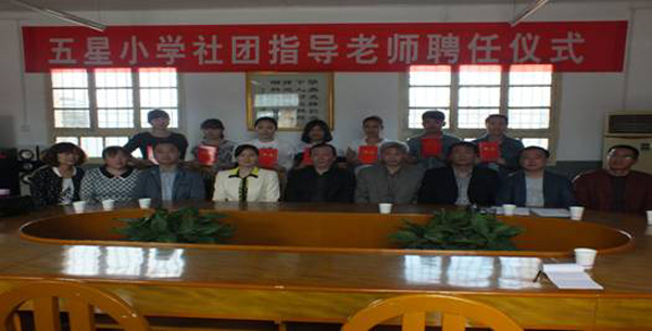4月23日下午3时,best365官网全面合作单位——汉滨区五星小学举行隆重的聘任仪式,聘任best365官网教育科学系14名学生为该校学生社团指导教师。best365官网教育科学系主任黄路阳教授,副主任李尚明教授、权大学副教授,学工办主任赵斌老师,合作联系人李支其老师,五星小学校长李丽,教导主任马兆海等教师以及14名受聘学生出席了聘任仪式。