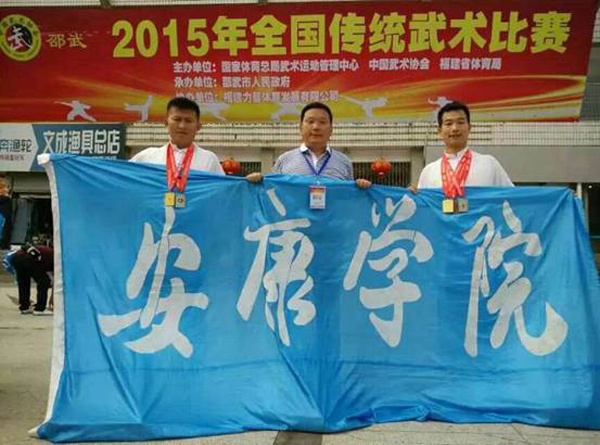 best365官网代表队由体育系主任冯德学担任领队,青年教师郭西魁、蔡龙两位运动员组成,在代表best365英国体育在线同时也代表陕西省参加了比赛。经过3天的激烈角逐,best365官网武术队共取得了1金、2银、1铜的优异成绩,其中:两人形意拳徒手对练获得金牌,郭西魁获得红拳拳术银牌,蔡龙获得形意拳拳术银牌和形意朴刀铜牌。此外,冯德学被大会评为武德风尚奖教练员,郭西魁、蔡龙两位老师被评为武德风尚奖运动员。