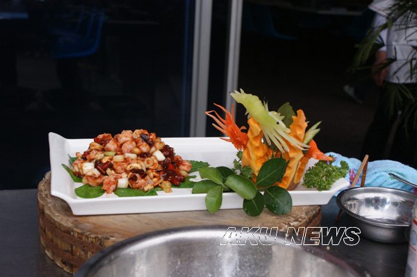 本次比赛由指定菜制作和自选菜制作两个环节组成,参赛选手们展示了高超的厨艺和拿手的绝活,做出了一道道美味可口的菜肴。台上做的卖力,烧的热火朝天,台下看的过瘾,品得津津有味。在比赛中,“大厨”们的精湛技艺和出色表现让厨艺大赛现场气氛热烈火爆,赢得了在场观众的阵阵掌声和一致好评。经师生代表组成的评委认真评定,教工食堂选手卢玉华师傅摘得桂冠,南粉北面李书明、第一食堂佘在赞师傅分获二、三名,孟青,尹飞、刘建革三位师傅获得优秀奖。