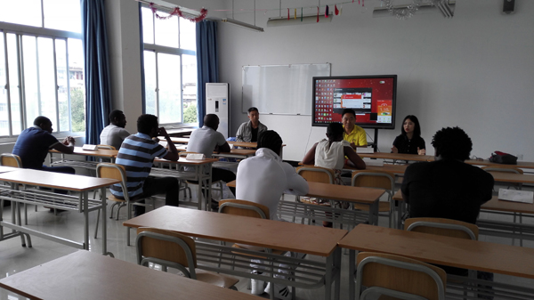 6月16日, 国际合作与交流处联同保卫处举行了best365官网留学生安全教育座谈会。 保卫处副处长王开忠、保卫处综合科及治安科负责人、留学生辅导员李泊霖及2014级全体留学生参加了座谈会。