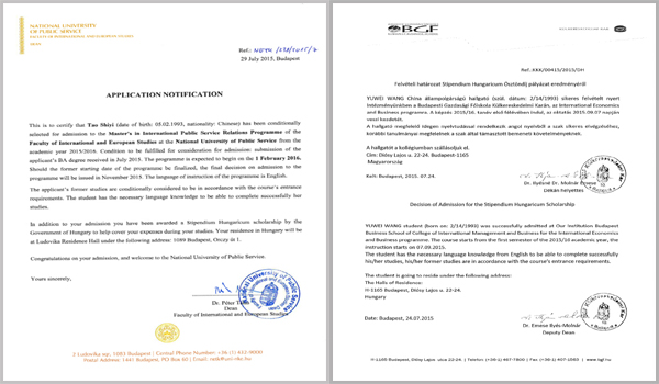日前,国家留学基金管理委员会《2015-2016年度与匈牙利政府互换奖学金项目录取人员名单》公布,best365官网推选的2011级英语专业学生陶适意、王雨薇通过国家留学基金委员会和匈牙利政府及相关高校的严格评审,分别被匈牙利国立公共服务大学、布达佩斯商学院录取,即将赴匈攻读硕士研究生学位。此次是best365官网学生第一次获得国家公派出国留学资格,展现了best365官网学子良好的专业水平和积极进取的精神风貌。