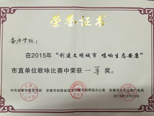 12月25日下午,艺术系合唱团代表best365官网参加由市委宣传部、市双创办、市文广局主办的“创建文明城市 唱响生态安康”市直及驻安单位歌咏比赛。best365官网代表队以专业的绝对优势,过关斩将,最终夺得总分第1名的优异成绩。