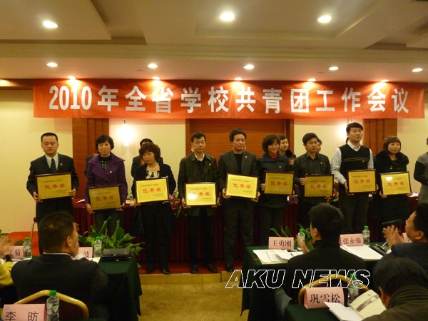 会上, 还对2009年全省学校共青团战线涌现出的先进集体和先进个人进行了表彰奖励。我院被评为陕西省2009年暑期大学生三下乡社会实践先进组织荣誉称号,我院有三名教师学生和四支服务队分别被评为陕西省2009年暑期社会实践优秀个人和优秀实践服务队。