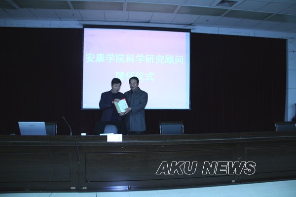 1月21日,我院科学研究顾问聘任仪式在学术报告厅隆重举行,聘任陕西省教育厅巡视员(原科研处处长)窦海潮同志为我院科学研究顾问,在热烈的掌声中,院长王兴林向窦海潮同志颁发了聘书。