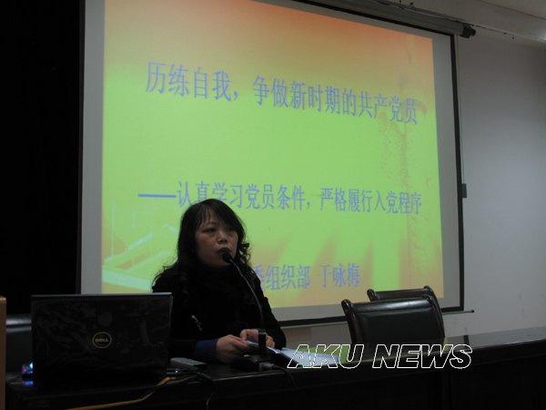 党委组织部于咏梅和田兆杰分别作了题为《历练自我,争做新时期的共产党员》、《增强组织纪律观念,争做合格共产党员》的辅导报告。 本期党员发展对象的培训,采用集中学习、观看影像资料、自学等形式。