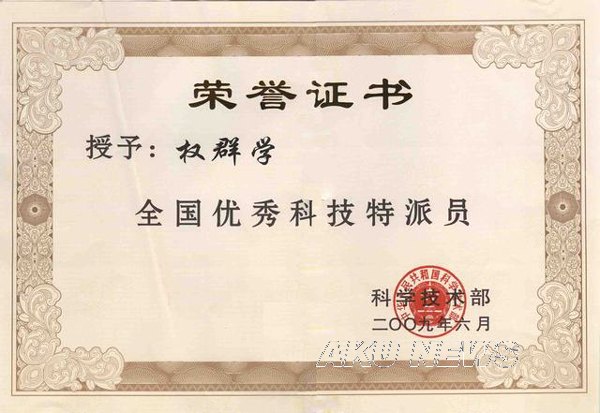 为了支持专业技术人员深入农业生产一线开展科技服务工作,2002年科技部、人事部在陕西等省(区)开展科技特派员基层创业行动试点工作。2005年权群学副教授被安康市科技局委派到正在筹建中的安康市阳晨牧业科技有限公司种猪繁育场担任技术总监。经过几年的建设,阳晨公司现已发展成为全省最大的种猪生产企业;国家级扶贫龙头企业;陕西省农业产业化经营龙头企业和陕西省储备肉活畜储备基地。权群学副教授的工作也受到各级领导肯定和媒体的关注,陕西日报、安康日报分别以《为了绿色的养猪产业―记安康市科技特派员权群学》和《我是一名光荣的科技特派员―记陕西省优秀科技特派员、best365英国体育在线副教授权群学》为题做了专门的报道。2006年权群学被陕西省人事厅、科技厅评为省级优秀科技特派员,2007年作为陕西省唯一一名优秀科技特派员代表参加了全国科技特派员经验交流大会,2009年被科技部授予全国优秀科技特派员荣誉称号。