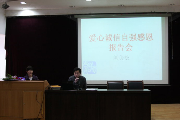 在报告中,刘美松介绍了他本次活动的缘起和具体的过程,讲述了在诚信目前社会种种现象,最后通过自己的不懈努力,验证了诚信的可贵,践行了诚信的诺言。认识到我们的社会,是有诚信和信任的,也是需要诚信和信任的,没有了诚信和信任,寸步难行。诚信是立人之本,是齐家之道,是交友之基,是为政之法,是经商之魂,是心灵良药,是当代大学生不可缺少的美德,我们需要它,社会需要它,同时,更需要我们大学生的诚信宣传和践行。