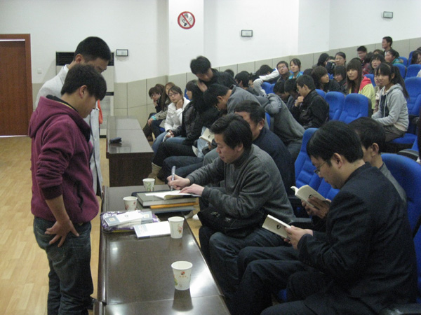 报告会在同学们热烈的掌声中结束,刘美松给同学们赠送了精美的纪念品和亲自签名的个人诗集。