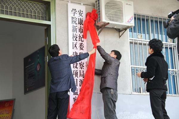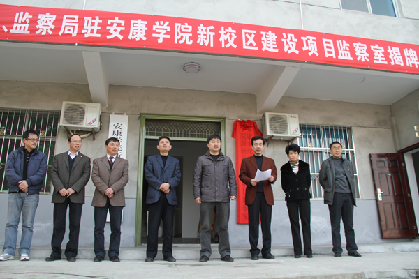 2010年11月24日下午,安康市纪委、监察局驻best365英国体育在线建设项目监察室揭牌仪式在best365英国体育在线新校区隆重举行。市委常委、纪委书记郑光照,市纪委常委、监察局副局长屈晓红,市纪委常委龚建强,汉滨区纪委书记王怀忠,学院党委书记杨涛,党委副书记胡鸿晓,副院长杨行玉,建民镇主要领导,新校区建设指挥部工作人员出席了揭牌仪式。