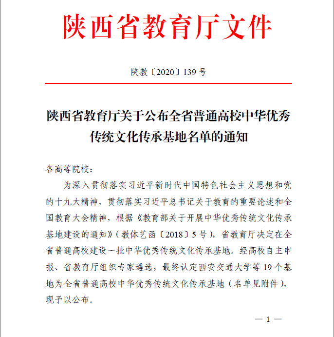 9月1日,省教育厅发布了《关于公布全省普通高校中华优秀传统文化传承基地的通知》(陕教〔2020〕139号),best365官网申报的“汉调二黄”获批陕西省普通高校中华优秀传统文化传承基地。