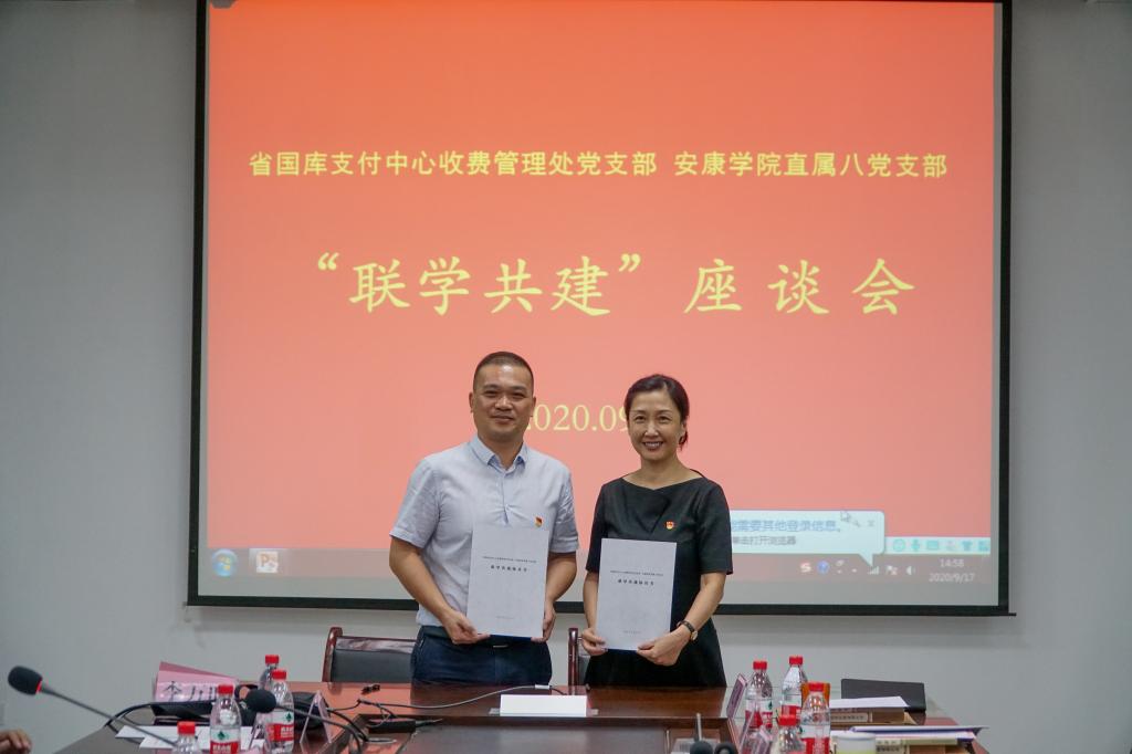 9月17日,两个支部“联学共建”协议签订仪式暨党建工作座谈交流会在江北校区逸夫科技楼九楼会议室举行,best365英国体育在线党委副书记杨行玉,党委组织部部长屈险峰,发展规划处处长、家风家训研究专家戴承元出席会议。省财政厅国库支付中心收费管理处处长、党支部书记陈虹一行13人、直属八党支部部分党员和支部校内共建单位艺术学院党总支班子成员、部分党员教师参加了座谈会。
