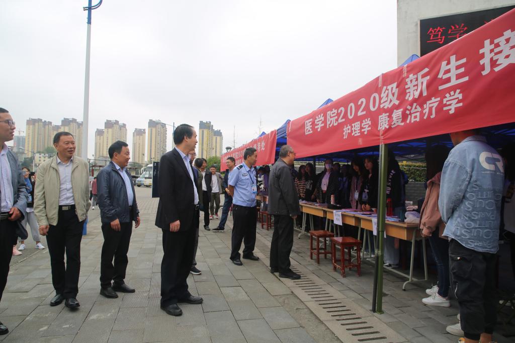 为了更好地了解新生报到情况,学校党委书记王国良,校长丁巨涛,党委副书记胡波,副校长钟生海、余谦一行先后赴江南和江北两个校区检查指导迎新工作,看望前来报到的2020级新生和家长,对迎新一线工作人员和志愿者表示慰问。