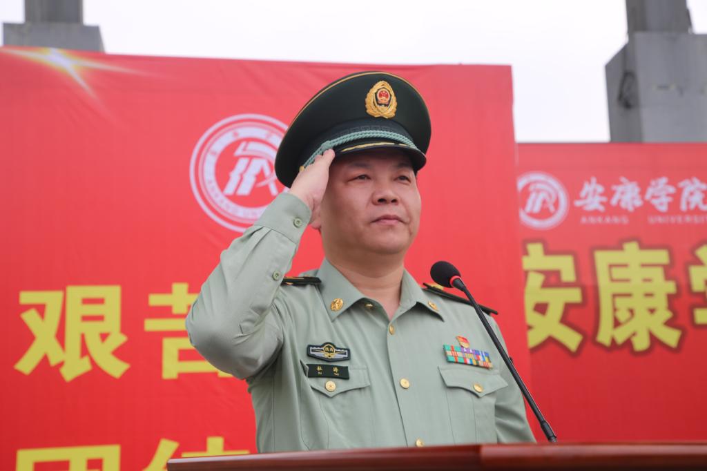 大会在雄壮的国歌奏唱声中拉开序幕。校长丁巨涛发表了热情洋溢的讲话。他代表全校师生向来自祖国各地的2020级新同学表示热烈的欢迎,向大力支持best365官网军训工作的安康市武警支队全体官兵表示衷心的感谢!为了让同学们更好地适应新生活、开启新征程,丁巨涛围绕“责任”向大家提出了三点希望:一是志存高远,胸怀家国之责。要胸怀家国之责,志存高远,把个人成才梦与“中国梦”紧密结合,将个人理想融入国家发展,让青春梦想与家国情怀始终保持同频共振,行稳致远。二是积极适应,勇担集体和社会之责。要主动适应新环境,用开放的视野去理解不同的文化,学会互相尊重与欣赏、团结与包容,求同存异、取长补短。要积极顺应时代发展潮流,在实践的大课堂中了解社会,磨炼意志,砥砺品格,为将来正式步入社会奠定基础。三是奋发作为,为自己的人生负责。要以历届优秀校友为榜样,始终保持昂扬向上的精神状态,不懈努力、厚积薄发,在贡献国家、社会中实现自我价值,赢得精彩人生。