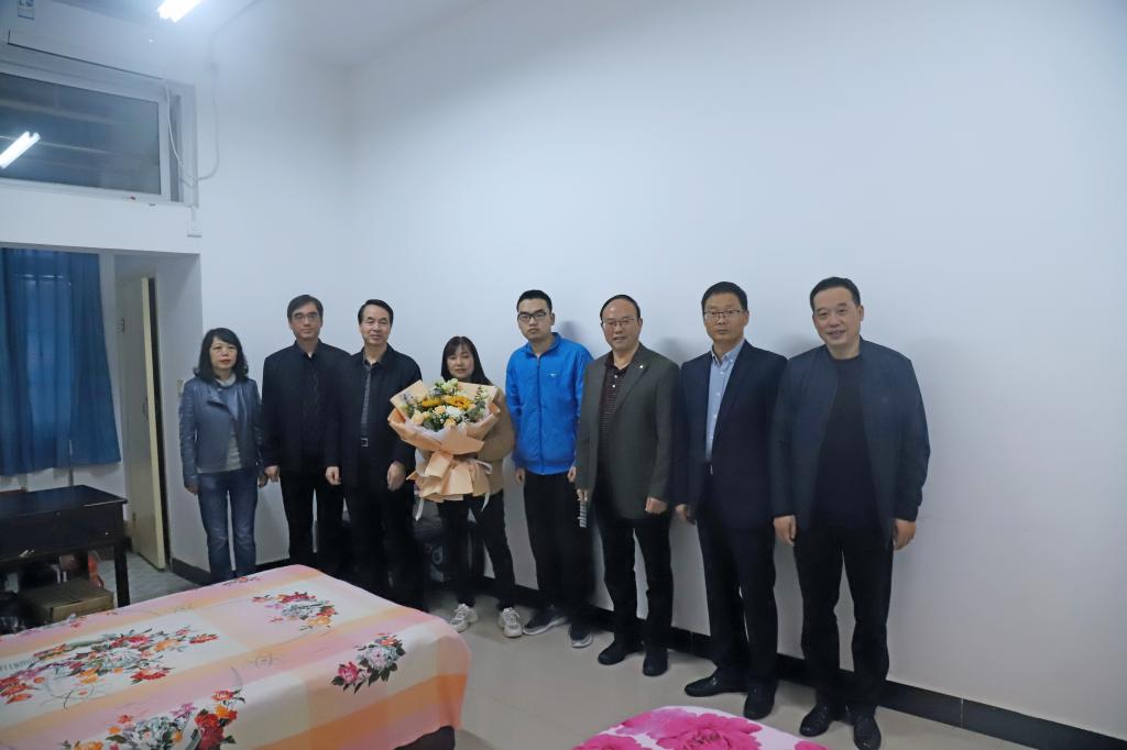 10月14日上午,学校党委书记王国良,党委副书记杨行玉,在学工部和电信学院负责同志的陪同下,前往宿舍看望慰问电信学院2020级电子信息工程专业学生刘朝阳。