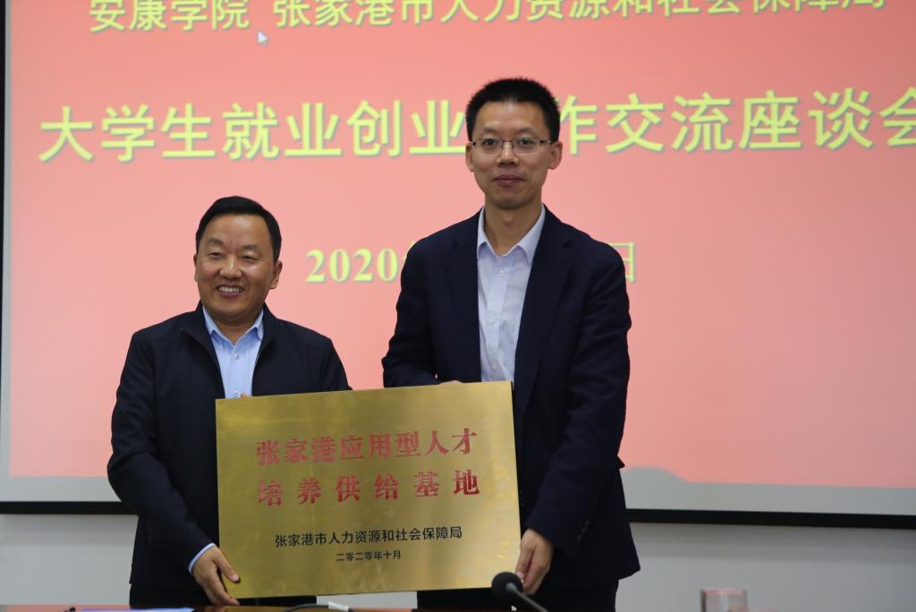座谈会上,双方达签订了人才资源合作开发协议,张家港市人社局为best365官网授予“张家港市应用型人才培养供给基地”牌匾。