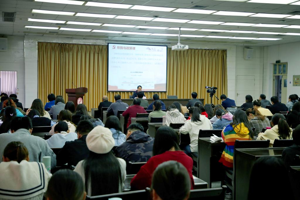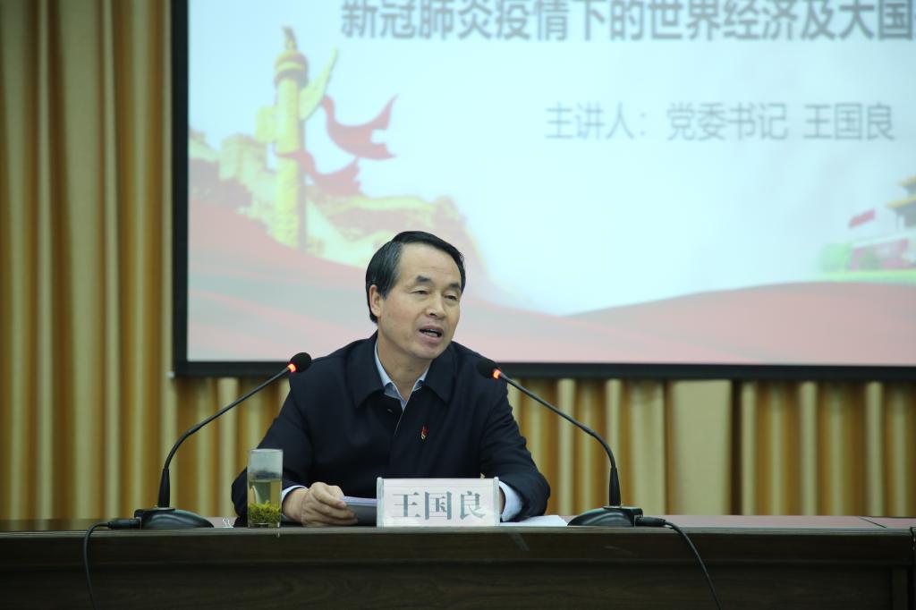 此次形势与政策课、党课由新冠肺炎疫情后的世界经济形势、新冠肺炎疫情后的大国关系及做好应对当前国际变局的策略工作三部分内容组成。王国良通过疫情前后世界经济形势对比,分析了当前世界经济格局的基本走向,同时深入探讨了具有代表性的中美关系、中俄关系和中印关系,并阐明了新冠肺炎疫情给中国带来的机遇和挑战。他强调,面对当前国际变局,中国要继续高举人类命运共同体的正义旗帜,奉行多边主义;开展中国特色大国外交,管控好大国关系和周边关系;坚持国际治理和国内治理相统一;积极应对近期涉华的舆论斗争;强化科技创新能力,进一步加强国防建设。