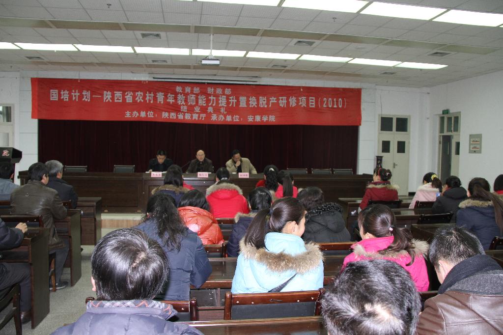我院承办的“国培计划”(2010)——陕西省农村青年教师能力提升置换脱产研修培训(初中生物学科)项目,在完成九大模块33门课程培训任务后,于元月17日圆满结束。十七日上午,学院在图书馆六楼报告厅举行结业典礼,学院副院长杨行玉、继续教育学院副院长王永东、首席专家屈国胜、学员代表陈蒲分别讲话。