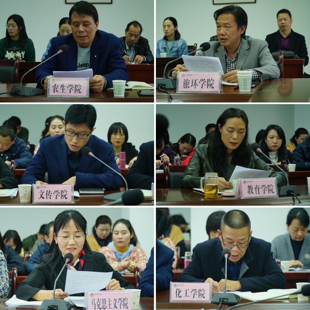 会上,获得2020年考研先进工作集体的农生学院、化工学院和马克思主义学院以及2019年度学生工作单向考核前三名的教育学院、文传学院和旅环学院等六个学院党总支书记分别就学风建设、考研指导、学生工作品牌创建、学生教育管理等工作进行了经验交流,分享了打造学院特色工作的思路、措施及成效。