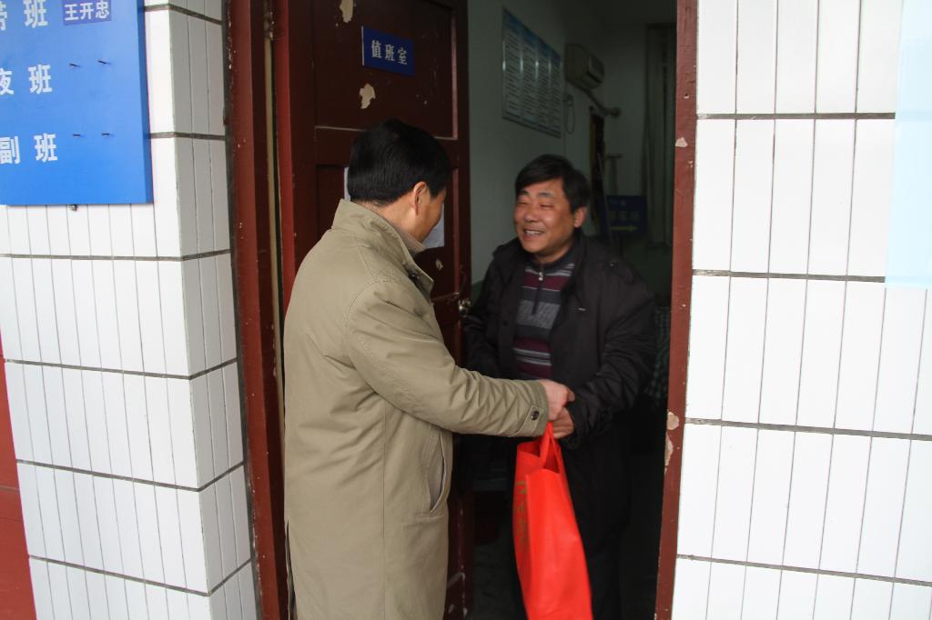 春节,是阖家欢乐的日子,为了保证大家能过好春节,我院还有部分职工依然坚守在各自的工作岗位上。 2月3日,农历大年初一。早上,学院党委副书记胡鸿晓带领办公室、保卫处、后勤集团等部门负责人前往东西校区慰问春节值班的办公室、后勤、保卫等人员。胡鸿晓与大家亲切握手交谈,向他们致以新春的祝福和亲切的问候,给他们拜年并代表学院对他们坚守岗位、辛苦工作表示感谢。