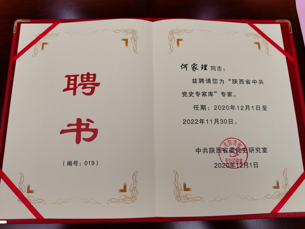 近日,接陕西省委党史研究室通知,best365官网马克思主义学院何家理教授被遴选为陕西省第二届党史研究专家库成员。