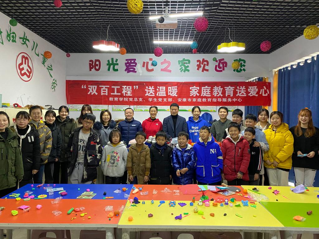 为进一步落实“双百工程”教育扶贫项目,服务基层教育,强化基层党支部建设和学生党员教育,安康市家庭教育指导服务中心、教育学院学生党支部于11月29日赴白河县枸扒镇留守儿童服务中心开展“‘双百工程’送温暖,家庭教育送爱心”主题活动。安康市家庭教育指导服务中心主任、教育学院党总支书记屈咏梅,学校“双百工程”工作队员、教育学院党总支副书记赵斌,学生党支部部分教师及学生党员参加了本次活动。