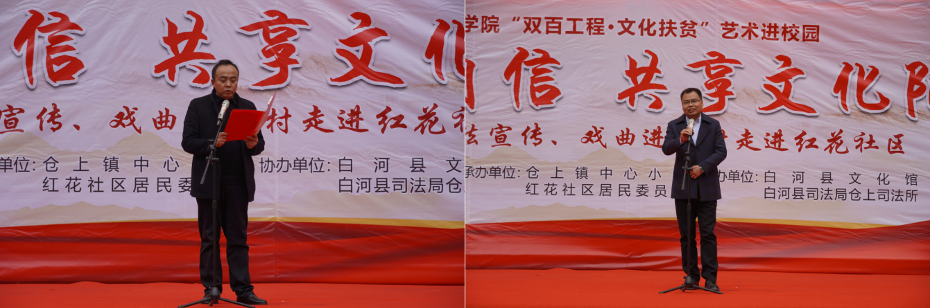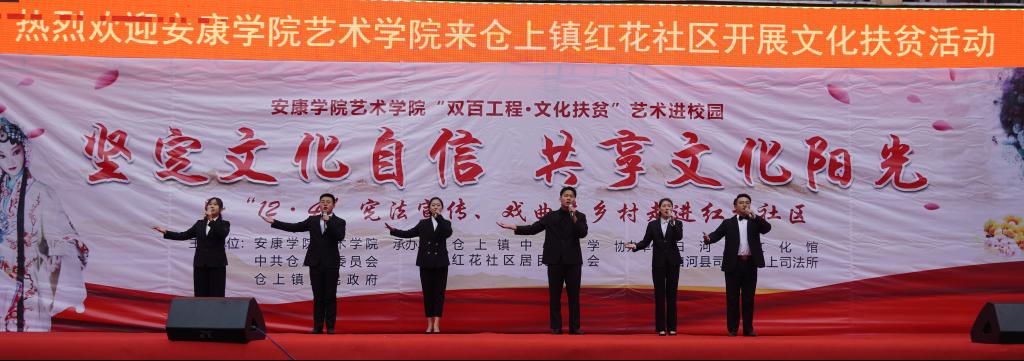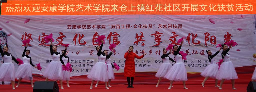近日,best365官网艺术学院组织50余名师生赴白河县仓上镇开展“双百工程 文化扶贫”文化帮扶活动,为当地群众送去一台以“艺术进校园——坚定文化自信、共享文化阳光”为主题的精彩文艺演出。学校统战部副部长、扶贫办副主任张富华,艺术学院副院长成党伟、鲍丽,仓上镇镇长文永超、副镇长李玖国以及1000余名学生和社区群众参加了此次活动。