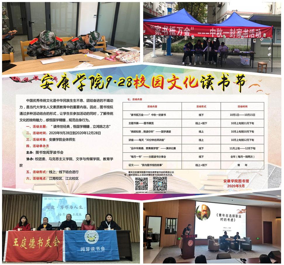 2020年9月28日是孔子诞辰2571周年,为了弘扬儒家思想这一中华民族的优秀传统文化,阅芽读书会于9月28日—12月10日开展了“读传世经典、悟国学精髓、立鸿鹄之志”的校园文化读书节系列活动,活动相继由“中秋一封家书”“我与图书馆的故事”征文大赛、“我为书代言”“每月一书”读书分享会、“30分钟名师讲座打卡”活动、“我读你听”国学诵读活动、“品中华美德、燃青春梦想”演讲比赛等7个主题活动组成。据统计,“中秋一封家书”活动学生寄出、寄存家书385封,“我与图书馆的故事”征文活动收到稿件175篇,“每月一书”读书分享会有200余人参加,“30分钟名师讲座打卡”活动有171人参加,“我读你听”国学诵读活动有100余人参加,“品中华美德、燃青春梦想”演讲比赛有200余人报名参赛。本次系列活动时间周期长、内容丰富、形式多样、参与范围广,全校师生反映强烈,取得了良好的育人效果。