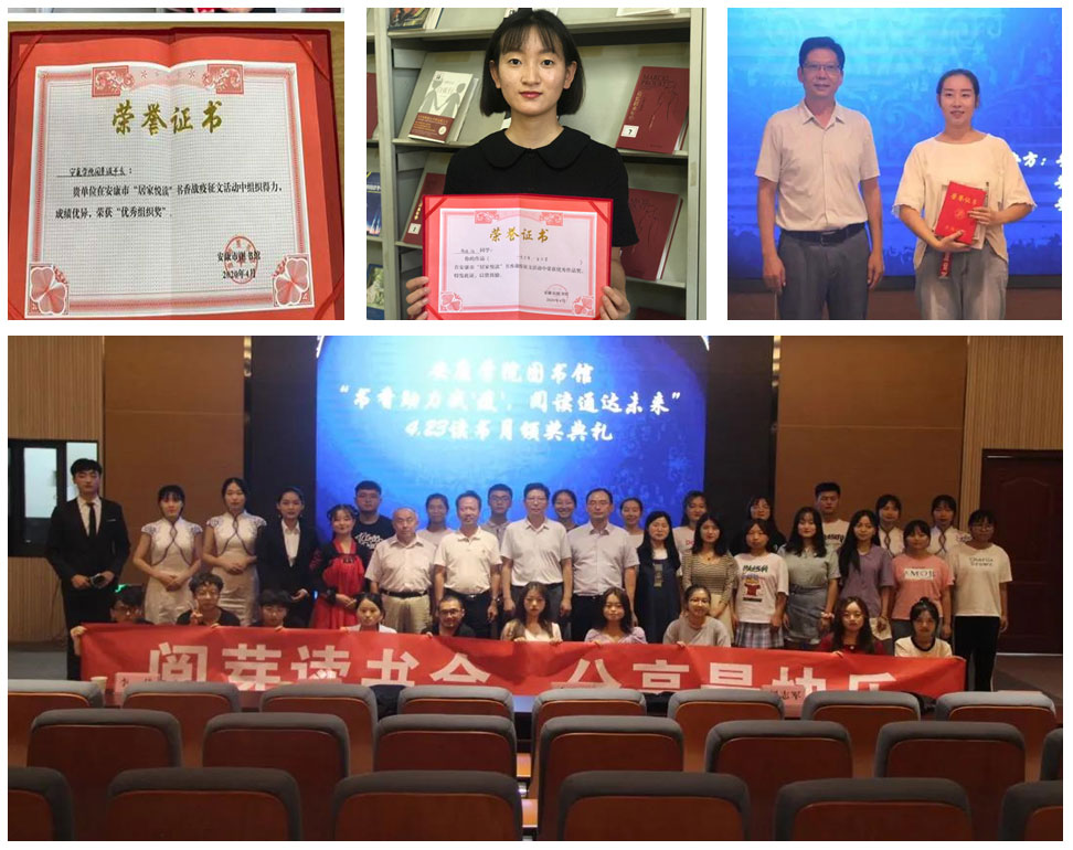“4•23”期间,阅芽读书会还组织师生参加了安康市图书馆学会发起的线上“全市同读1小时”“居家悦读征文”“读者荐书大赛”等活动,提交作品近200件,获奖50余件,阅芽读书会获得了“全市同读1小时”优秀奖,以及“读者荐书大赛”“居家悦读征文”大赛优秀组织奖。通过共读、共赏、共交流的系列阅读活动,达到了以书香愉悦氛围,帮助读者调适心态、恢复健康、顺利返校的目的。