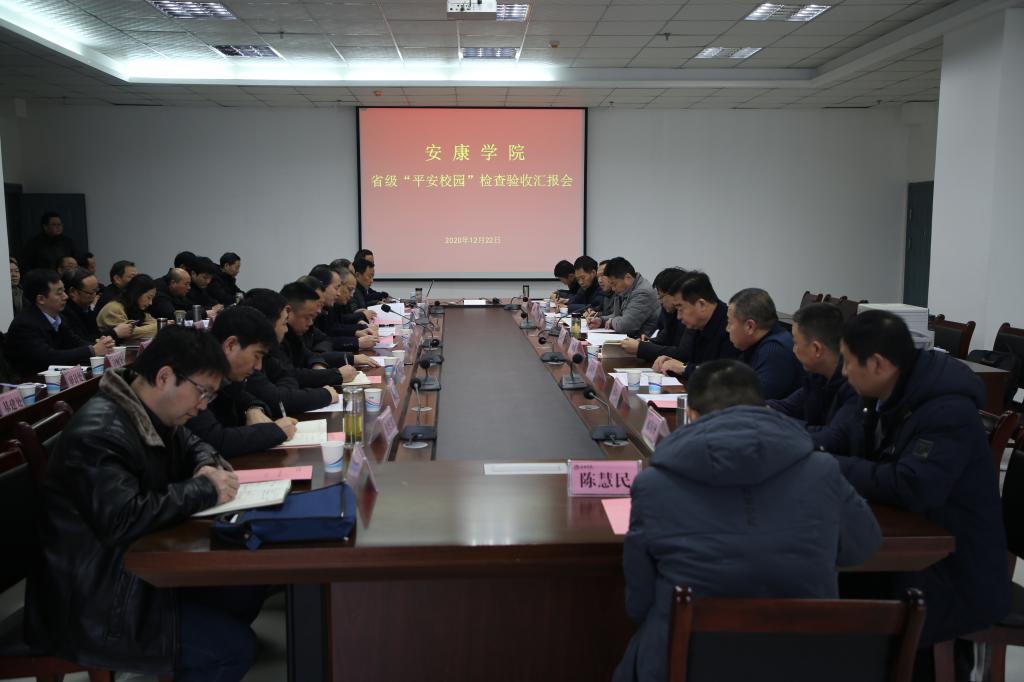 12月22日,“省级平安校园”检查验收组组长、西安理工大学党委副书记马宁一行12人,莅临best365官网考评验收“省级平安校园”建设工作。学校领导班子成员,安康市公安局经文保支队副支队长熊函山及“平安校园”建设工作领导小组成员单位负责人参加汇报会。汇报会由党委副书记杨行玉主持。
