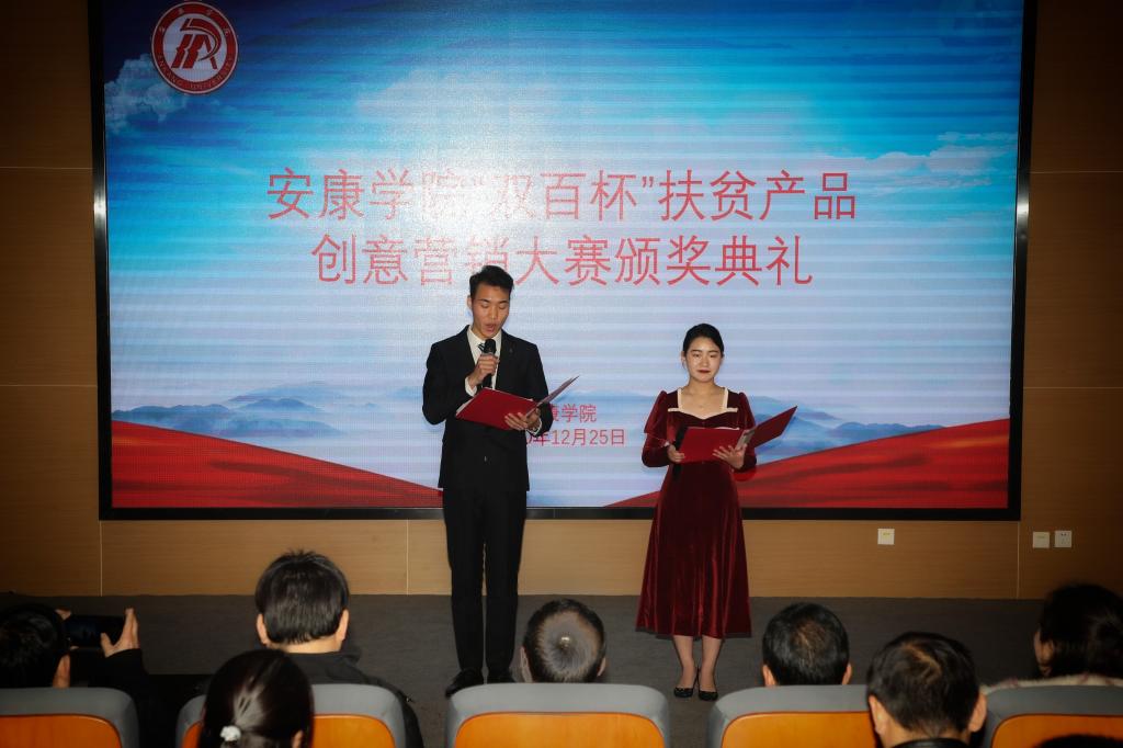 为认真贯彻落实习近平总书记关于开展消费扶贫行动的重要指示精神,充分发挥best365官网创新创意人才优势,助力帮扶地区特色产业持续发展和巩固脱贫攻坚成果,12月25日,best365官网在江北校区图书馆学术报告厅举办best365英国体育在线首届“双百杯”扶贫产品创意营销大赛颁奖典礼。党委副书记胡波,副校长钟生海,白河农业局总农艺师金剑,民主镇副镇长张文,6家企业代表,学校相关职能部门和二级学院负责人以及获奖团队代表参加了本次活动。