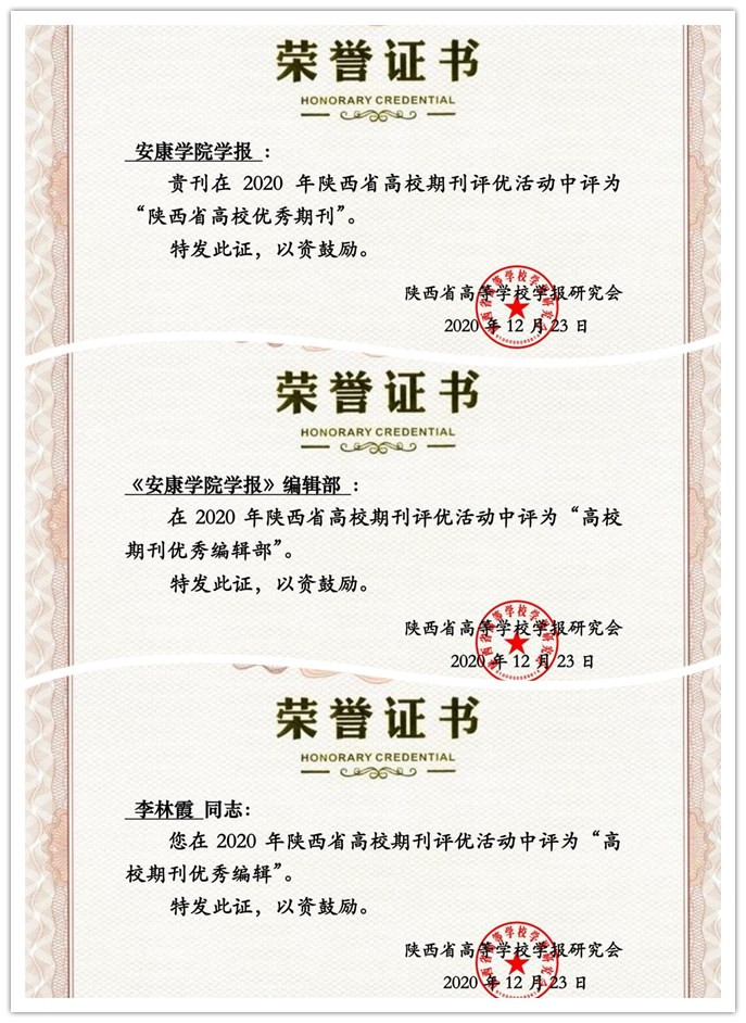 陕西高校学报研究会2020年度高校期刊评优活动结果日前揭晓,best365官网学报获得“陕西省高校优秀期刊”称号,学报编辑部被评为“高校期刊优秀编辑部”,李林霞同志被授予“高校期刊优秀编辑”荣誉称号。