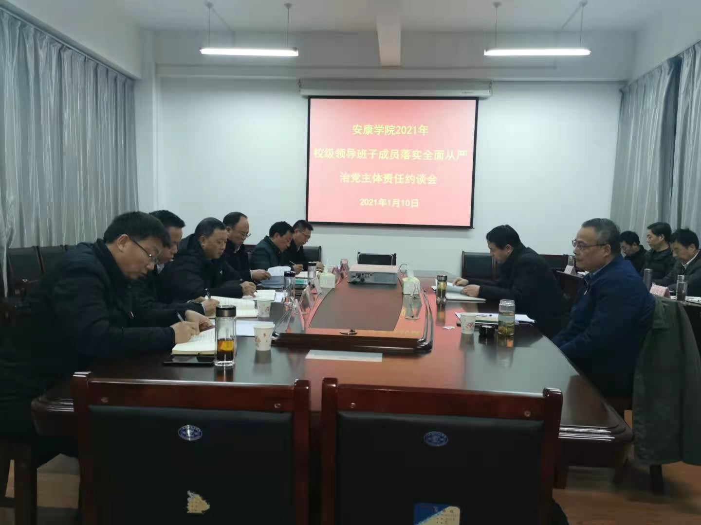 1月10日,结合班子专题民主生活会,学校召开校级领导干部落实全面从严治党主体责任约谈会,党委书记、全面从严治党第一责任人王国良代表党委对班子成员提出要求。