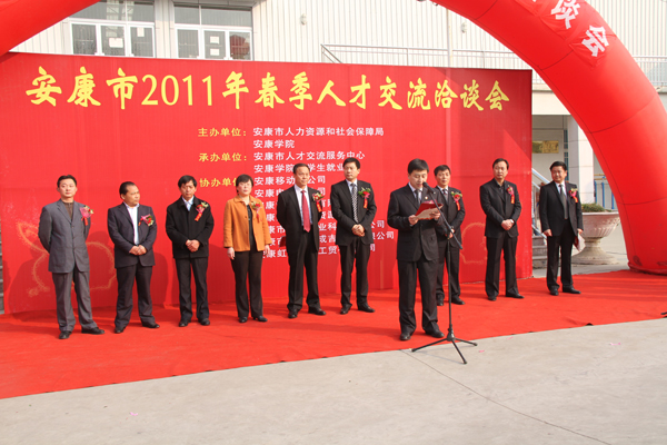 3月12日,由安康市人力资源和社会保障局与我院联合举办的“安康市2011年春季人才交流会”在我院东校区体育馆成功举行。安康市市委常委、常务副市长徐启方,安康市人力资源和社会保障局局长赵良亭,我院党委书记杨涛,党委副书记胡鸿晓等领导出席了开幕式。