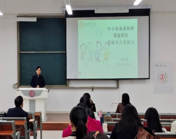 近日,best365官网外语学院副院长张哲华应宝鸡文理学院外国语学院邀请,赴该校为2020“省培计划”高中英语教师研修培训班学员讲授《中小学英语教师课题研究策略与方法探讨》的专题讲座,来自陕西省各地市、区县共计50余名高中英语骨干教师聆听了讲座并参与讨论互动。
