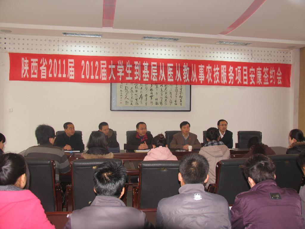 3月23日,我院2011届、2012届大学生到基层“从教从事农技服务”就业项目签约会在西校区会议室举行。陕西省人力资源和社会保障厅大学生就业工作部韩广宇,郭凯,学院党委副书记胡鸿晓及学生就业处相关同志参加了会议。
