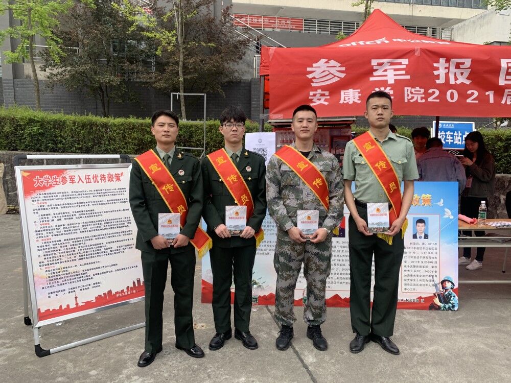 本次宣传得到了安康军分区及汉滨区人民武装部的大力支持,区人武部部长孟高峰、政委蒋华成、副部长艾宗强专程来到现场,与best365官网武装部工作人员和退伍学生共同开展应征宣传和咨询。